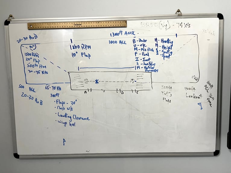 Typically there is a briefing before a new training segment. Before we fly, we take the time to understand the objectives, mechanics, conventions and safety considerations. Bob, my flight instructor, gave me this briefing ahead of circuit training next week.