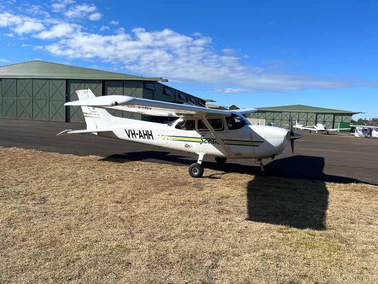 This Cessna 172 with call sign VH-AHH is the second (out of three) in the small fleet of airplane owned and operated by the Australian Scouts Air Activities Center in Camden.