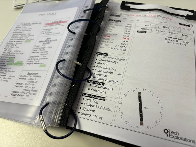 I have designed several “cheat sheets” to help me while I fly. They contain information I collected from various flight school handouts, textbooks I have read, and CASA documents, books, and websites.