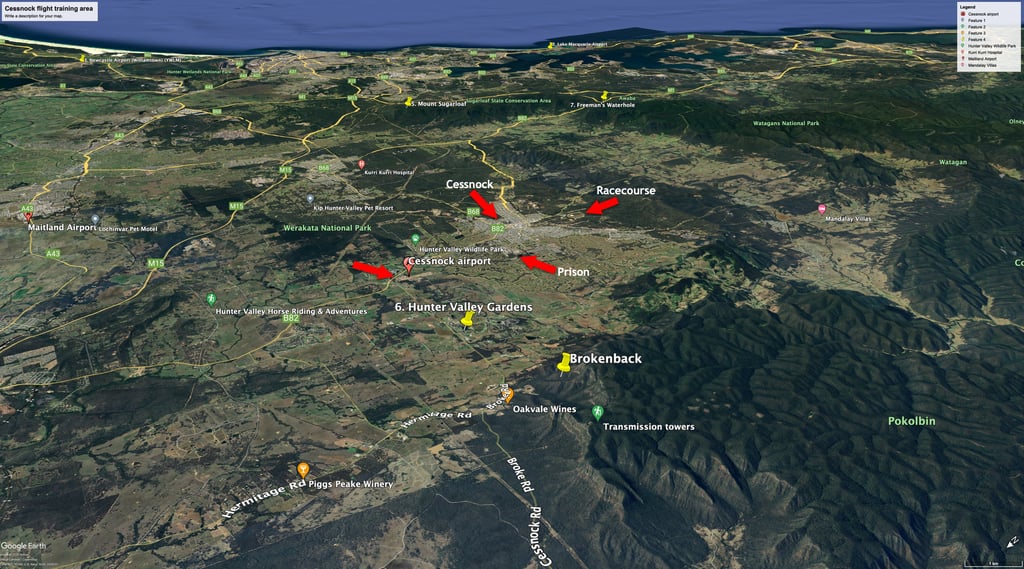 Cessnock flight training area landmarks