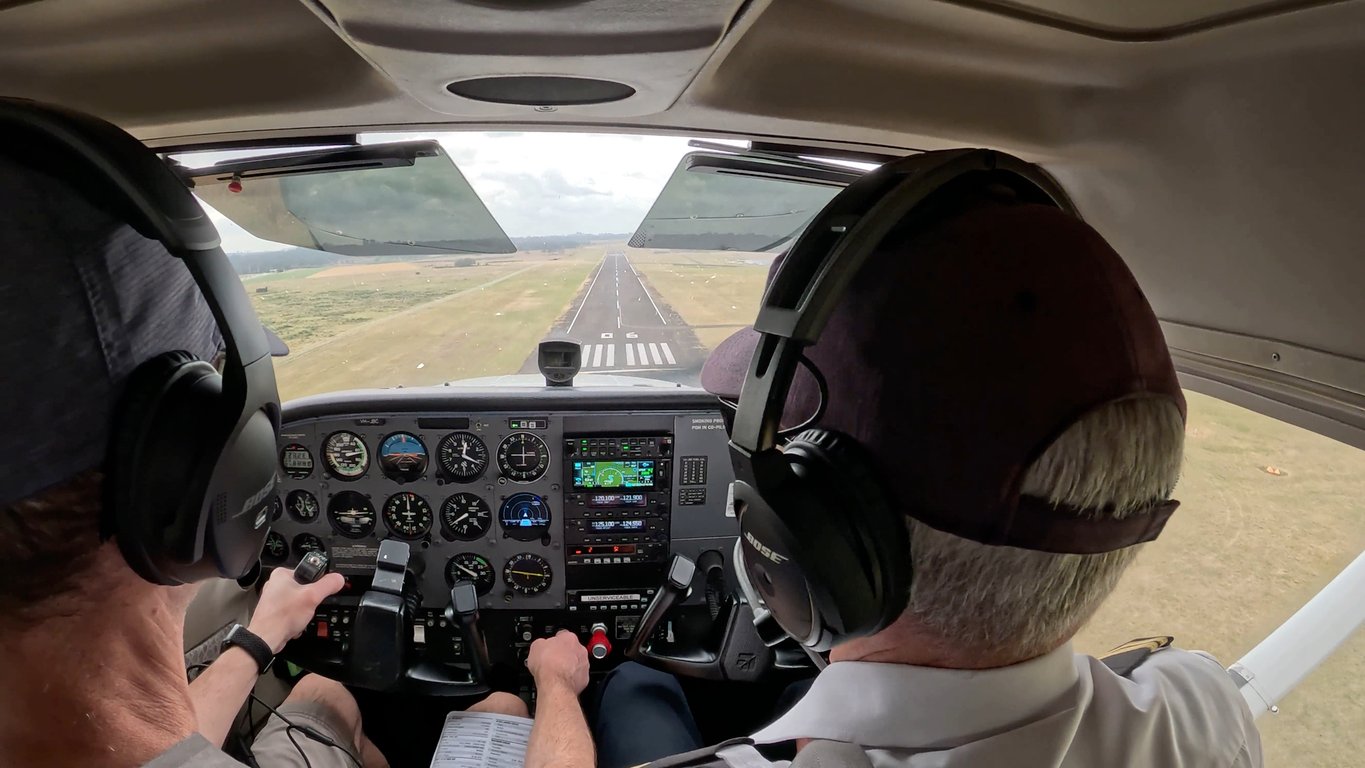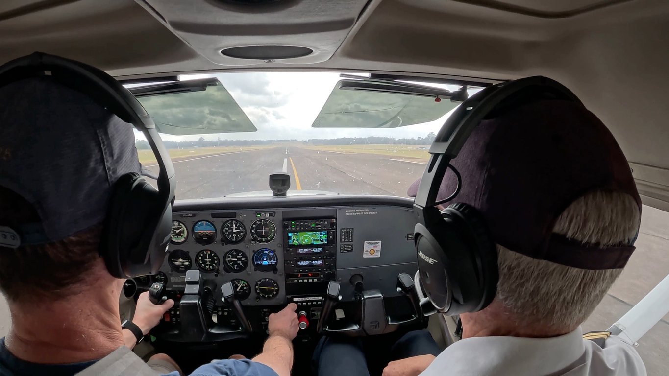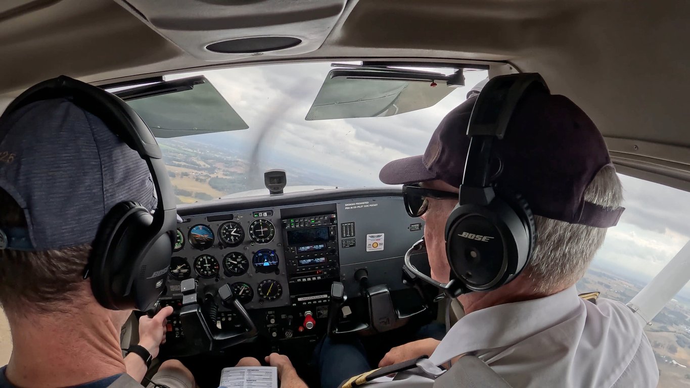 You can see the entire flight in the full-length video above. Use the timestamps on the Youtube video to jump around. For the first time I used two cameras. One mounted behind us, looking into the cockpit and the windshield, and the second mounted on the left window to provide a better few of the control panel.