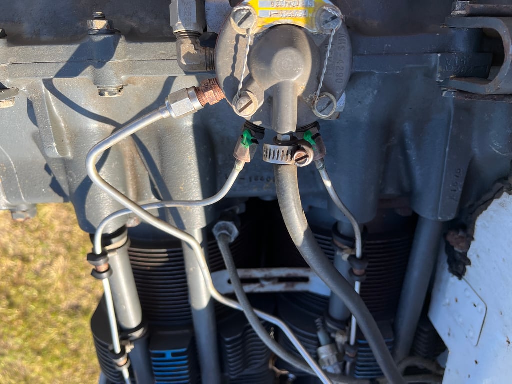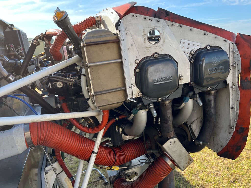 You can see the battery (with the red cover) and the caps of two of the engine's cylinders (notice the Lycoming brand stamped on the caps).