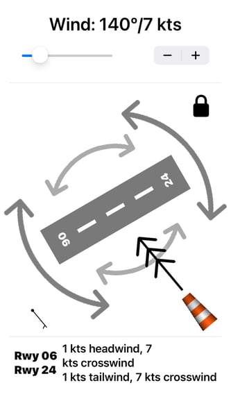 The wind for this session was almost all crosswind at 7 kt, with only a tiny amount of headwind (just 1 kt!). See the diagram on the right.