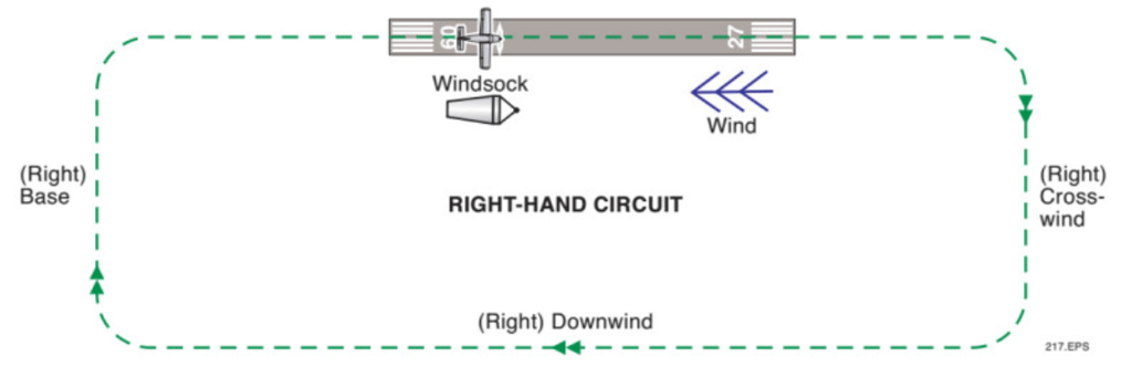 A right circuit (borrowed from the Flight Training Manual, 11th edition, published by Aviation Theory Center).