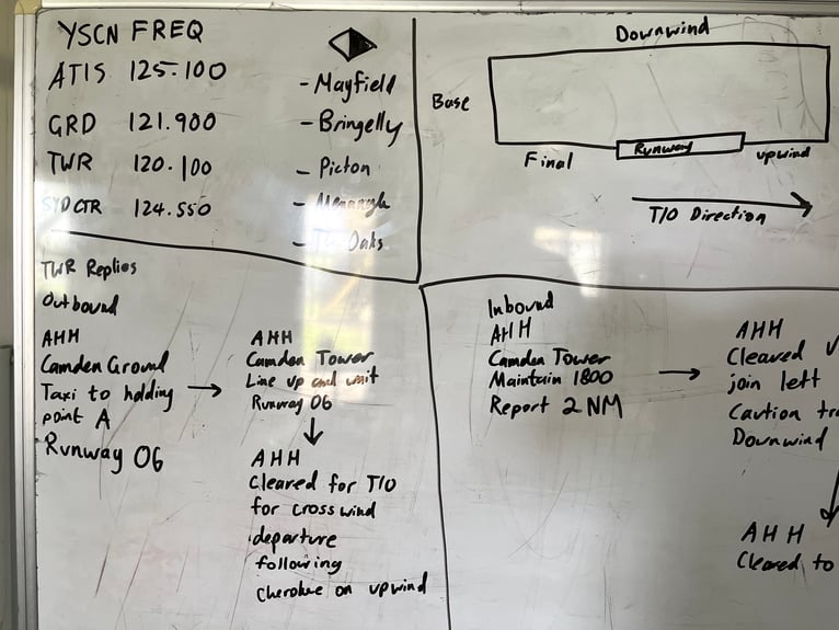Each day starts with the briefing. In the briefing, we learn some theory, such as "how the wing generates lift", and preview what we'll do later in the plane, such as "you'll practice straight and level flight".