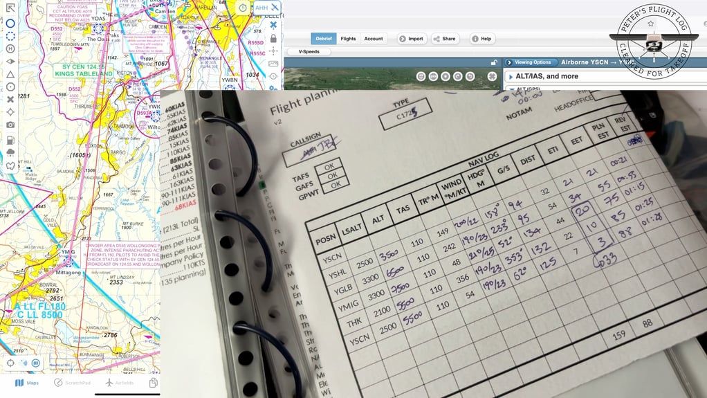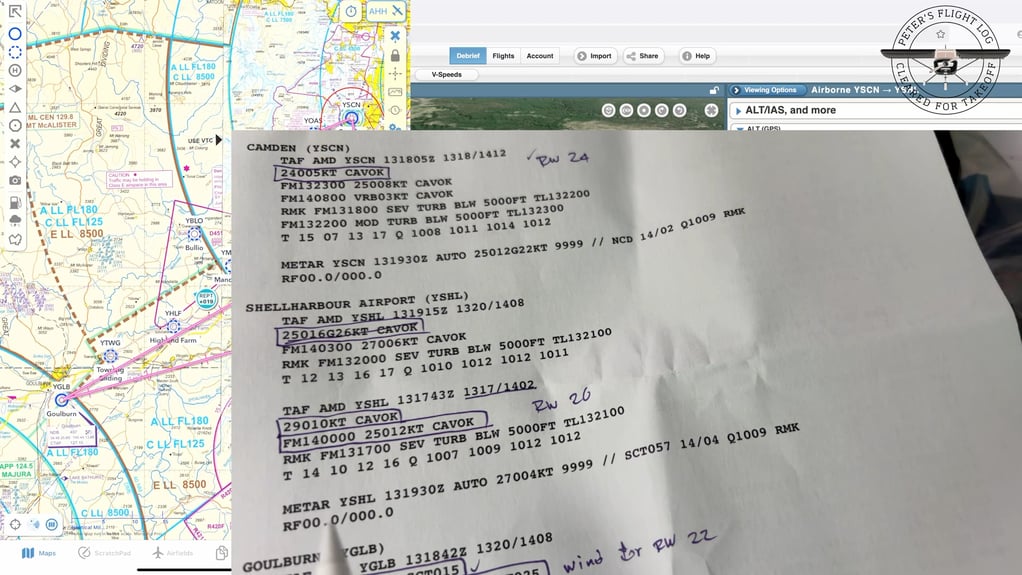 I had spent a lot of time preparing for this flight. My original plan was to fly a triangular route: Camden → Shellharbour (YSHL) → Goulburn (YGLB) → Mittagong → Camden. I had carefully plotted the route on my VTC, calculated fuel requirements, altitudes, headings, and wind drift using the BOM forecast and NOTAMs. It was a comprehensive plan.